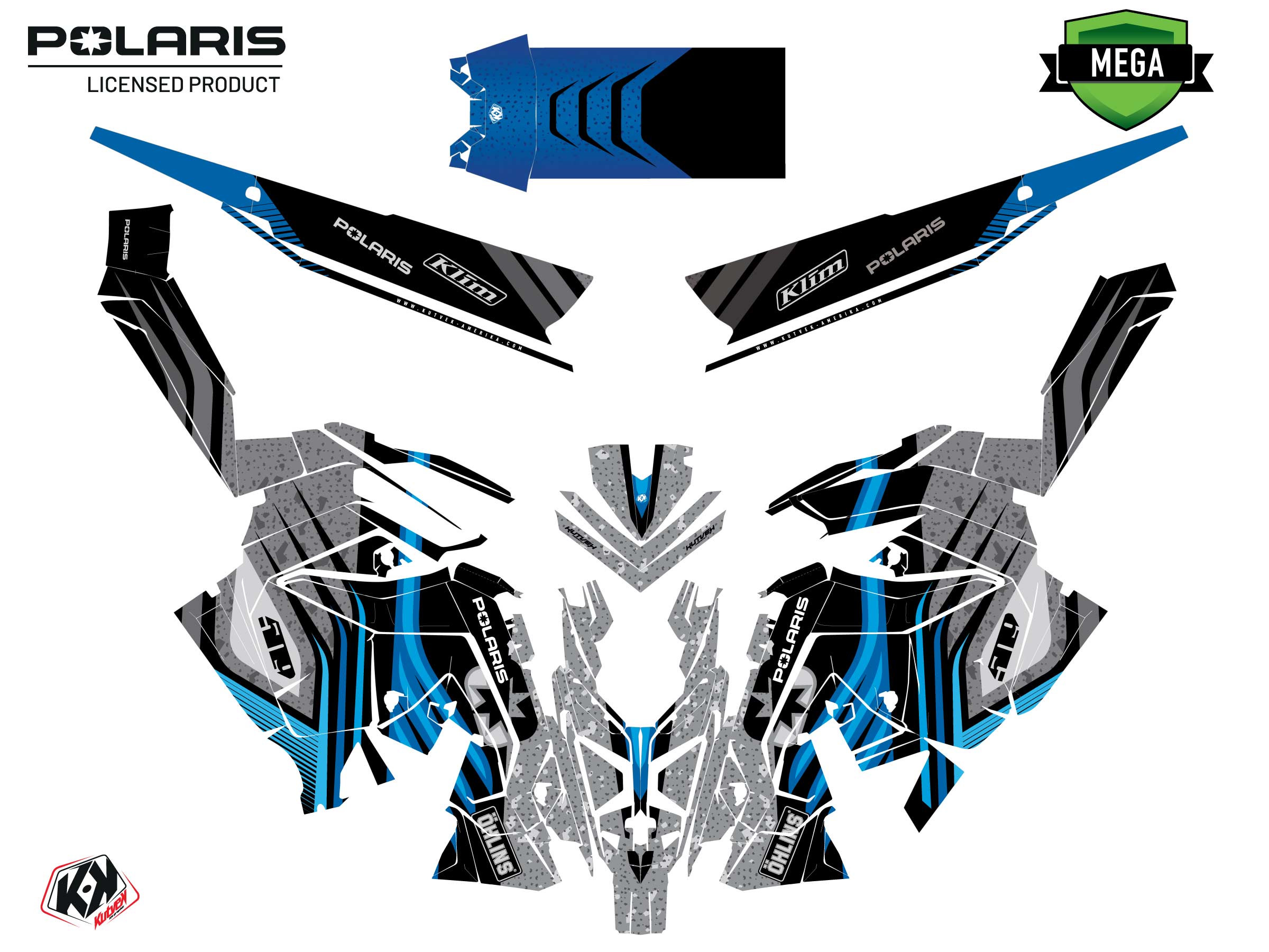 The MOTONEIGE POLARIS RMK PRO MATRYX graphic kit includes :