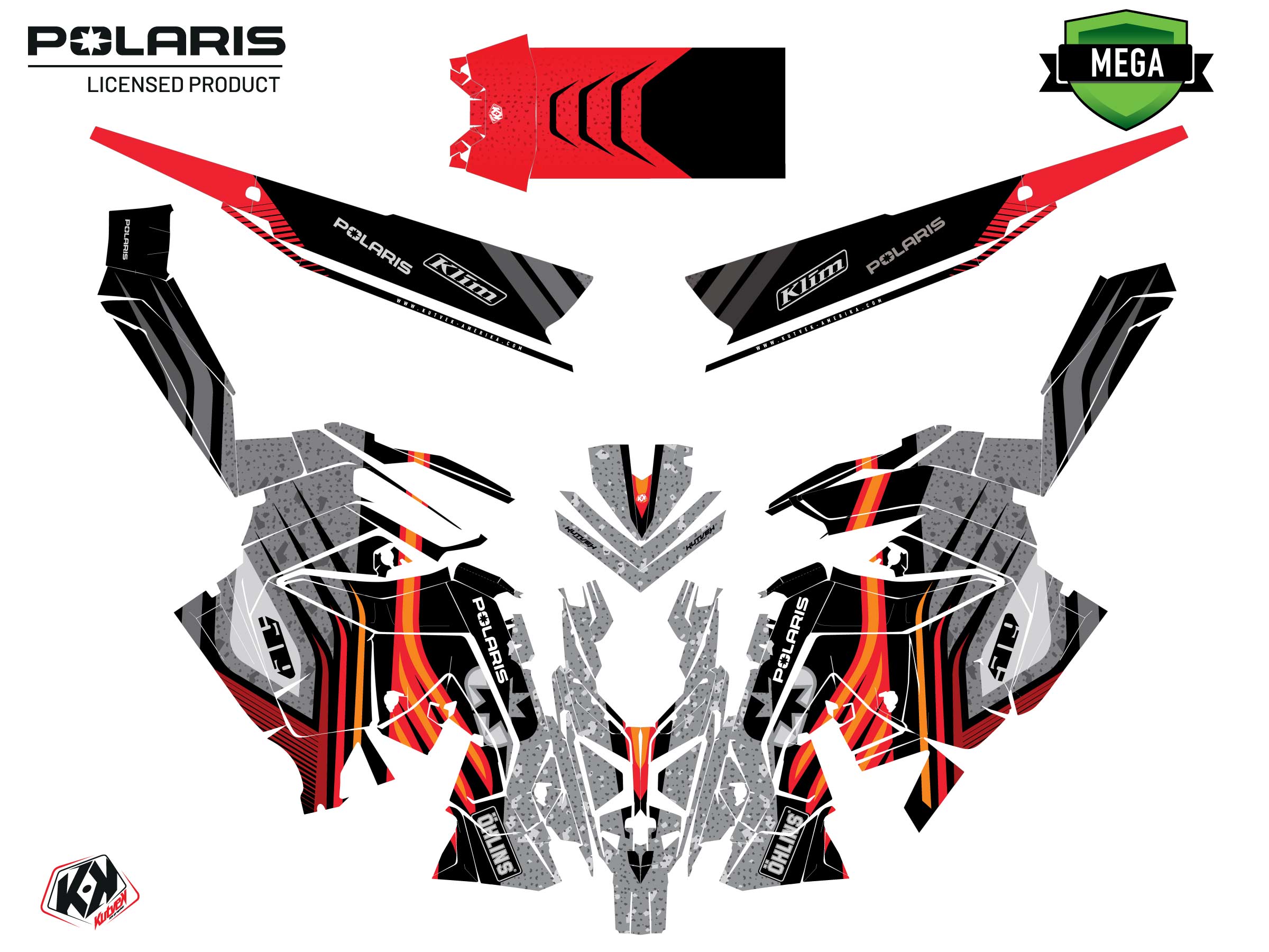 The MOTONEIGE POLARIS RMK PRO MATRYX graphic kit includes :