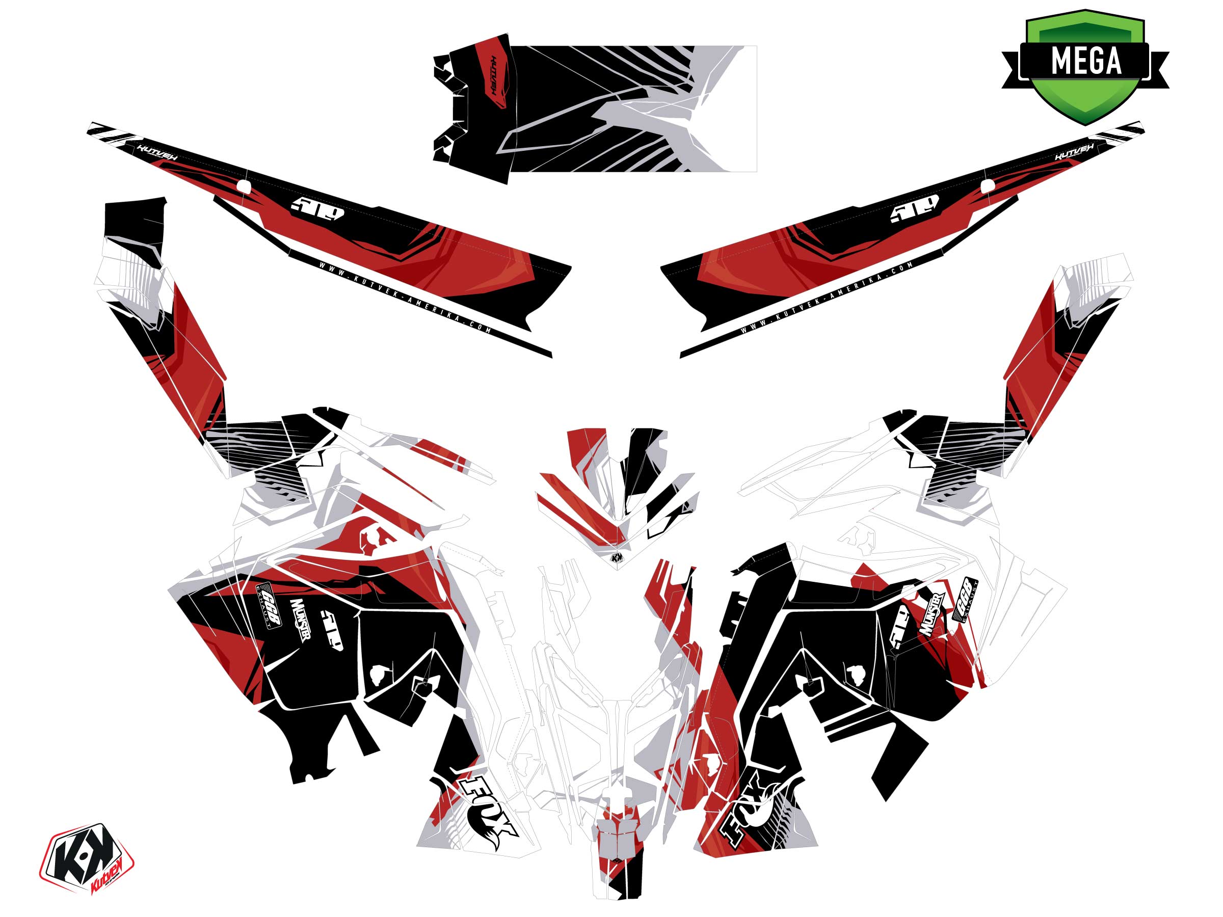 The MOTONEIGE POLARIS RMK PRO MATRYX graphic kit includes :