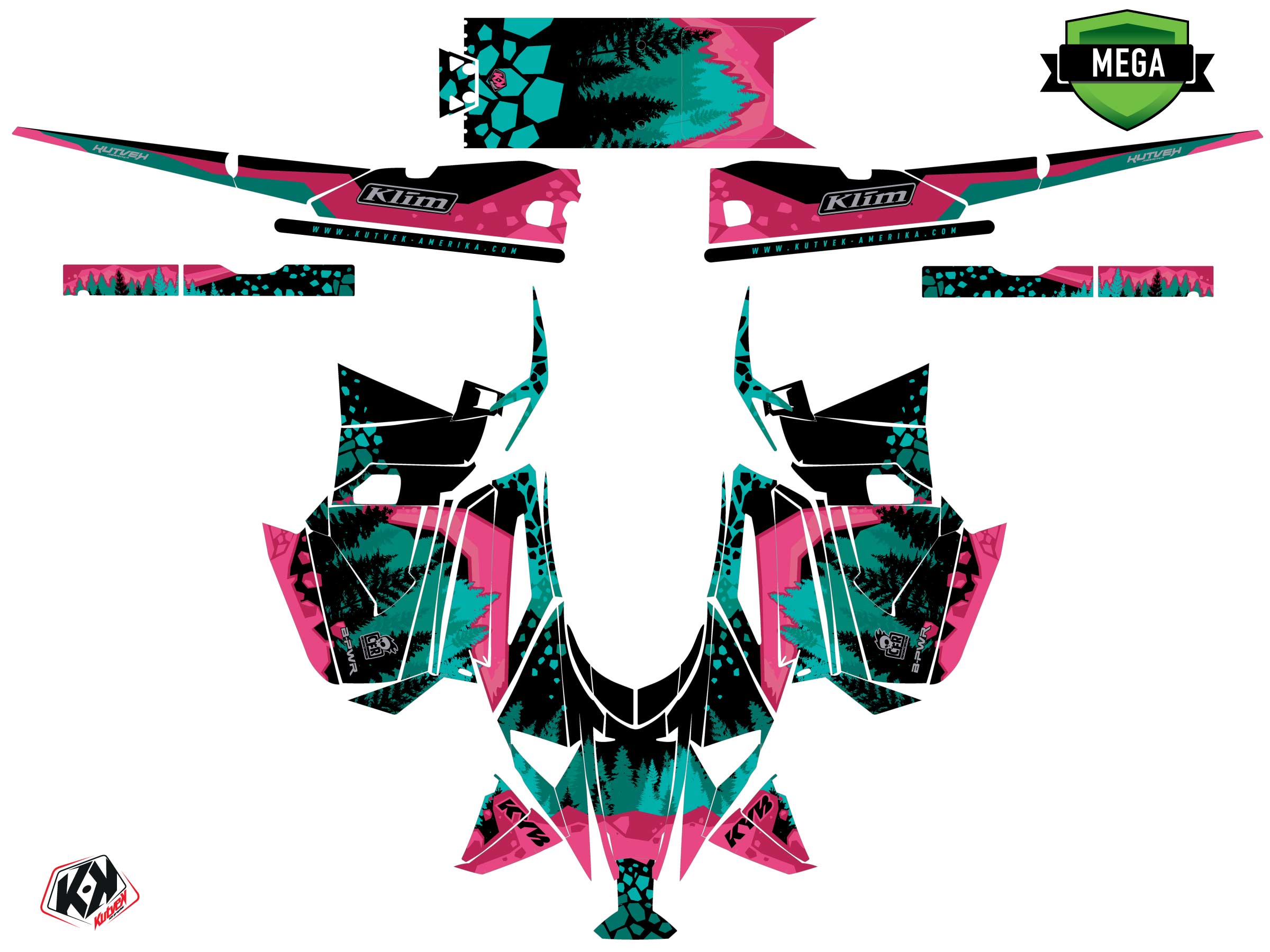 The MOTONEIGE YAMAHA MOUNTAIN MAX graphic kit includes :